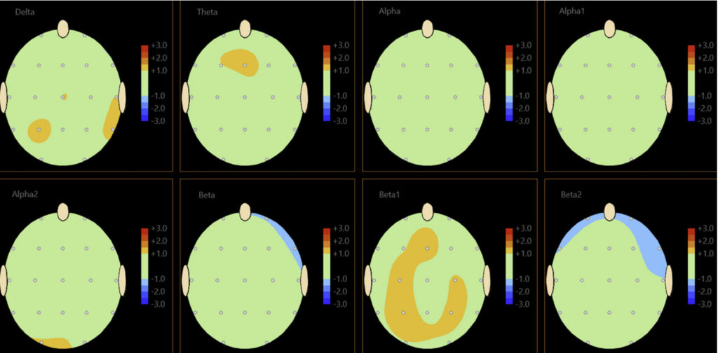 From there, we create a personalized plan that gently guides your brain toward better balance, clarity, and resilience. Rather than diagnosing conditions, a BEC brain map is used as a guide to understand how your brain is operating and where it may need support. It provides a baseline that informs personalized brain training and regulation strategies, helping the brain move toward more efficient and balanced patterns. Over time, follow-up maps can show how the brain is changing and adapting, giving a clear, measurable view of progress as it learns to function with greater clarity, resilience, and ease.